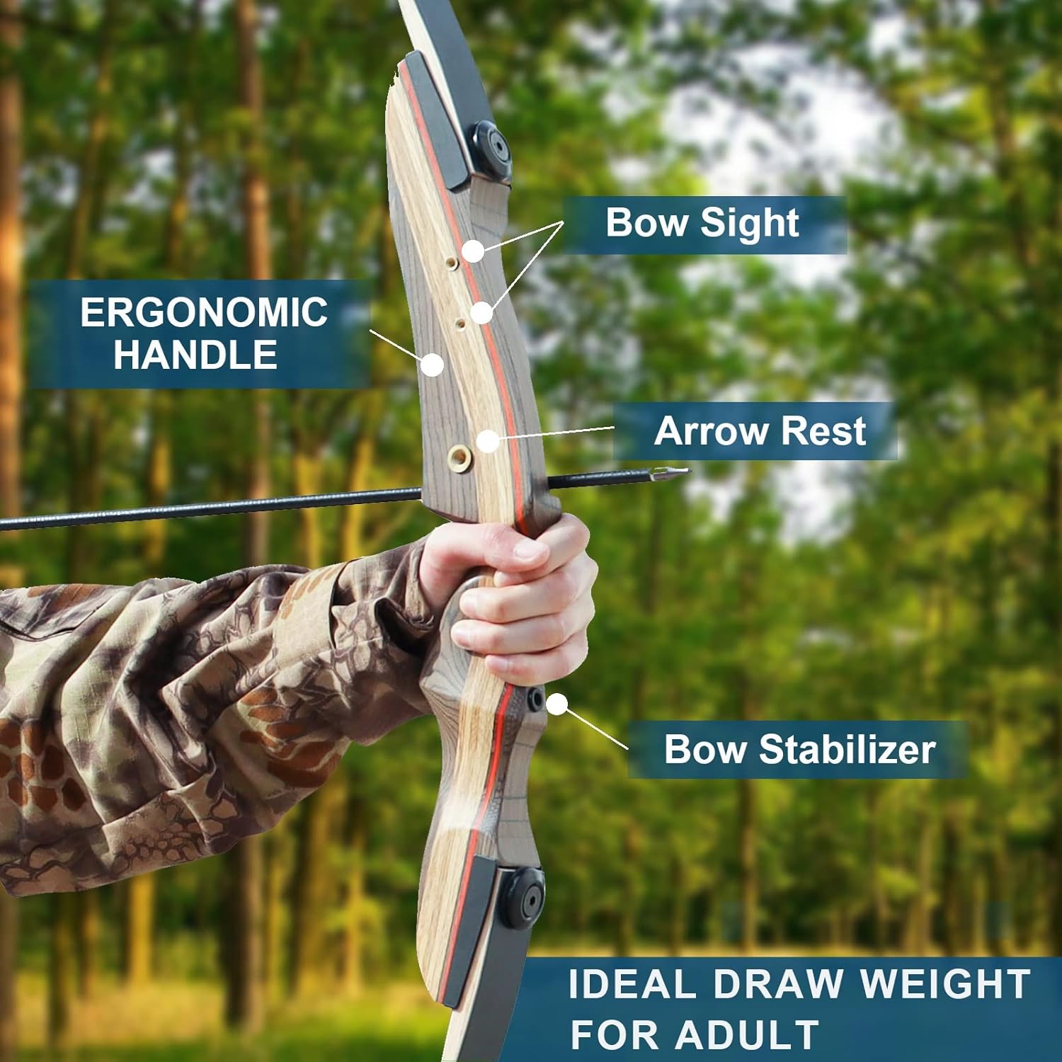 Tongtu 60 20 60 Lbs Archery Recurve Bow And Arrow Set For Adult Wooden Riser Hunting Takedown Bow For Target Practice Outdoor Shooting Amazon Co Uk Sports Outdoors